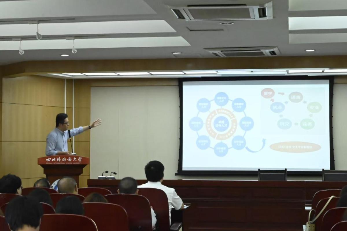陈可冉副院长以“守正创新·砥砺前行——日语学院发展回望与前瞻”为主题开展新生入学教育,通过珍贵档案与详实数据回顾学院五十年办学历程、专业建设和国际留学项目等,并寄语2025级新生把个人成长融入学院发展,用多语种、跨文化、数智化的综合能力开启大学新篇章。