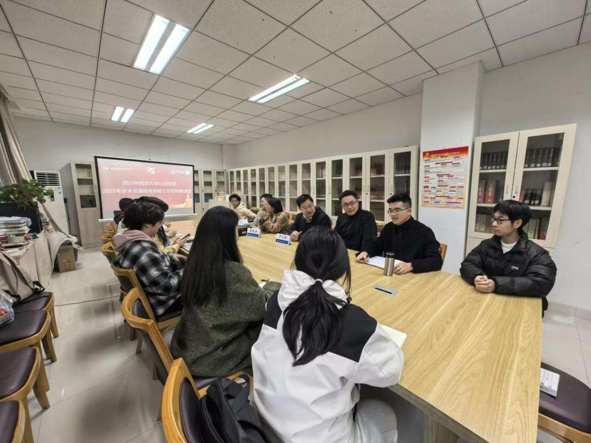 时值岁末天寒日,温情洋溢校园中。为深入落实国家资助政策,传递学校暖心关怀,倾听学子心声,激励自强精神,日语学院于12月8日在立德楼B303开展2025年岁末送温暖暨资助育人工作总结座谈会。学院党总支书记罗先明,副院长陈可冉、赵晓燕和辅导员参加活动并与各年级受助学生、考研学生代表学生亲切交流,共话成长。座谈会由团总支书记曾贵老师主持。