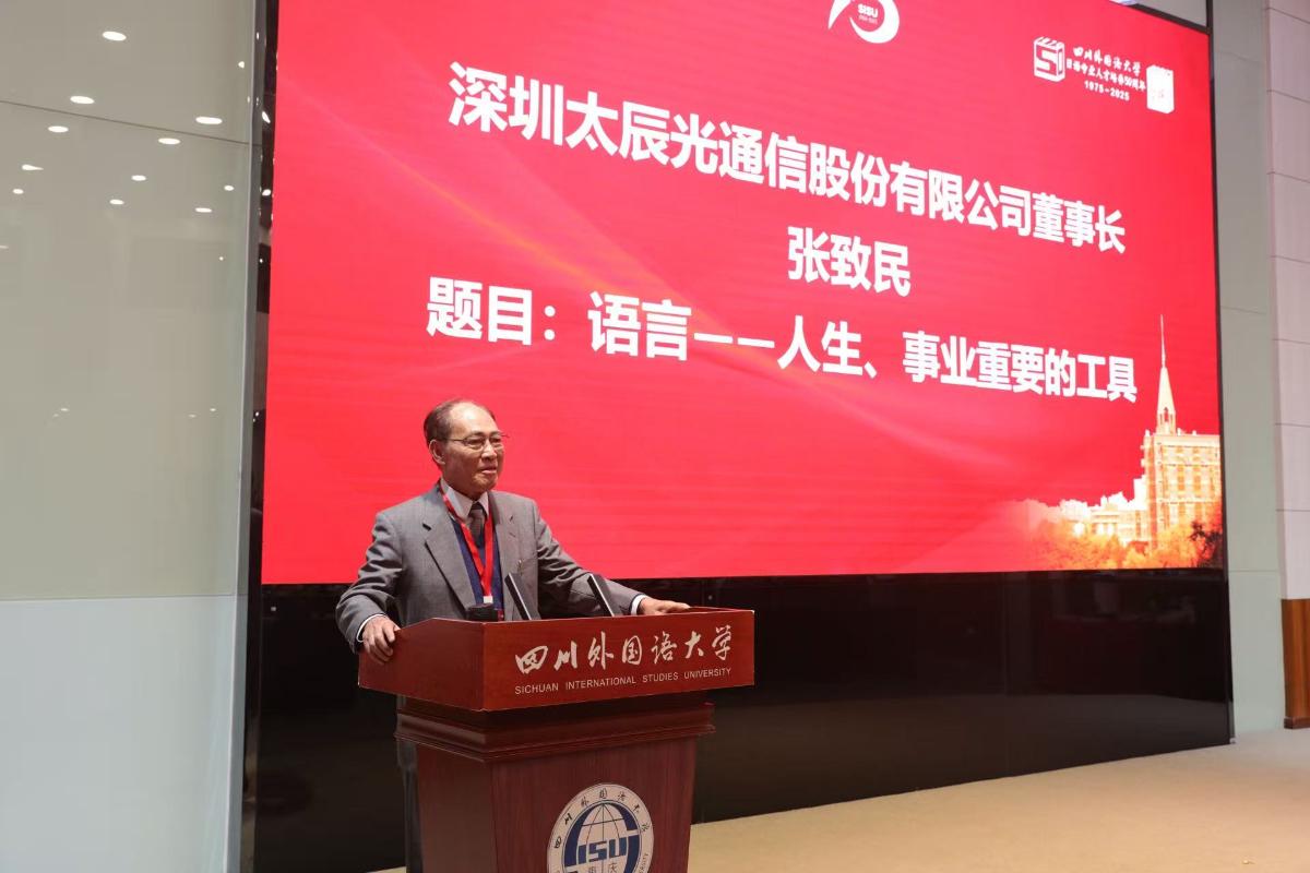 1980 级校友、深圳太辰光通信股份有限公司董事长张致民,以《语言 —— 人生、事业重要的工具》为题分享自身感悟。他明确指出,外语学习是拓宽人生边界、延伸职业空间的必要条件,其价值不仅在于知识的积累,更在于有效表达能力的塑造,是通往更广阔事业舞台的重要桥梁。结合自身学习与创业经历,张致民告诫同学们 “机会永远留给有准备的人”,鼓励大家珍惜当下的时代机遇,主动学习、锤炼本领,将个人专业所学与国家发展需求紧密结合,最终实现人生价值与事业成就的双重突破。