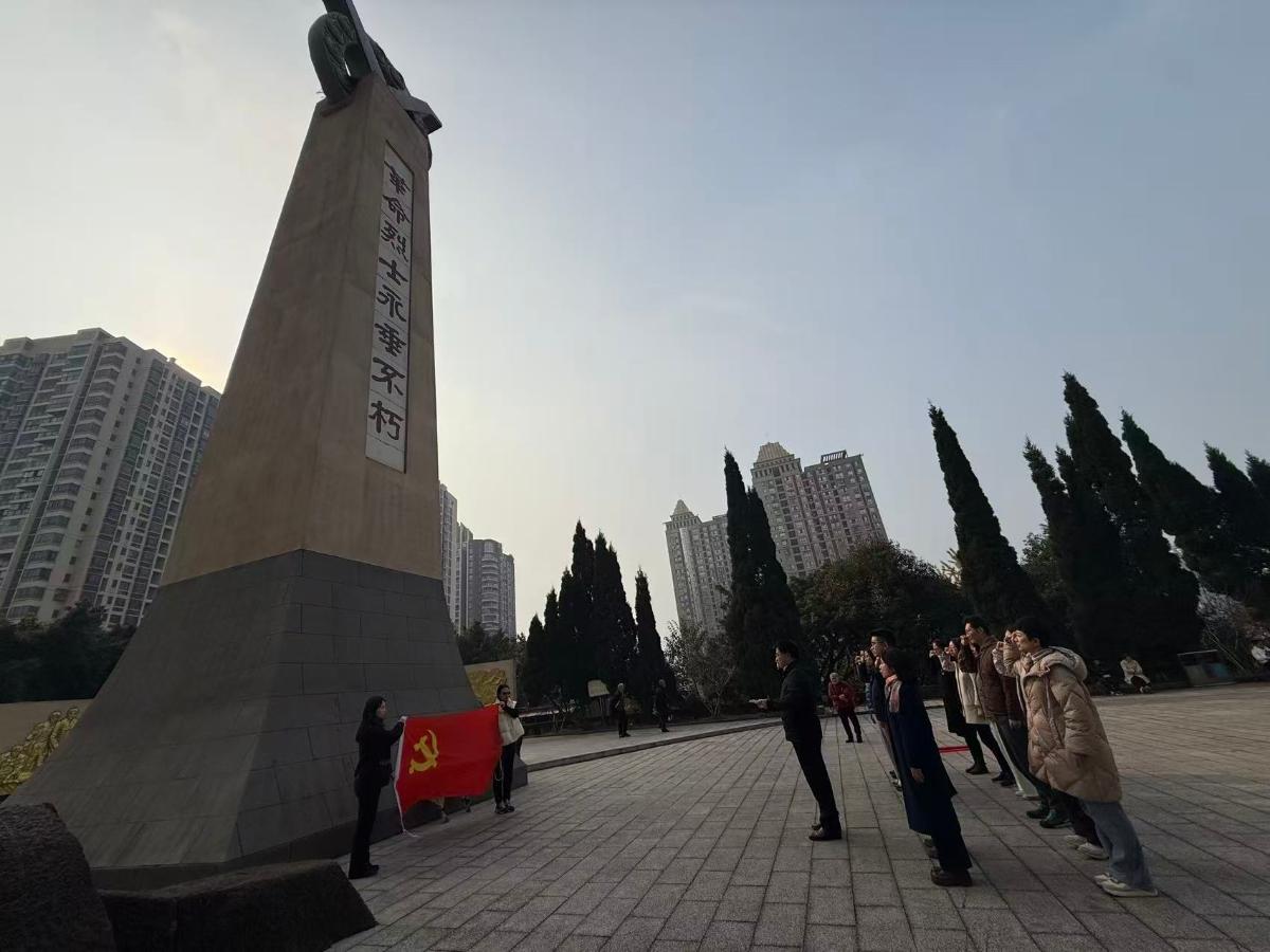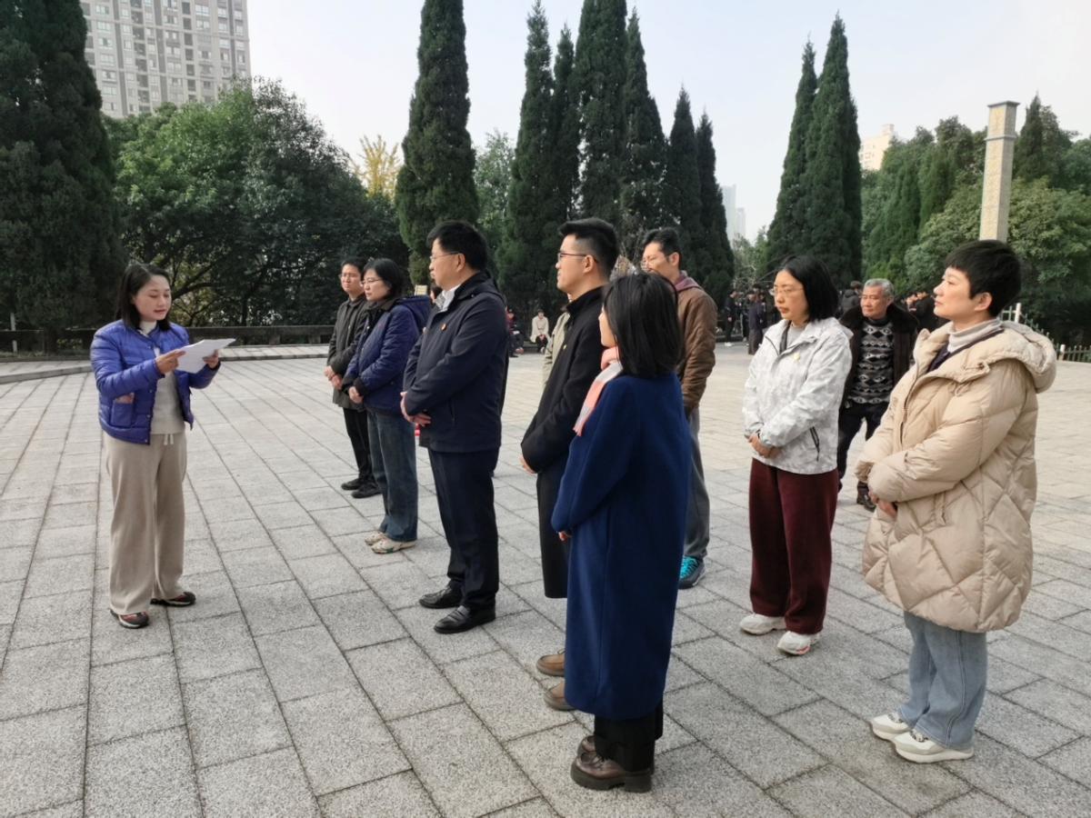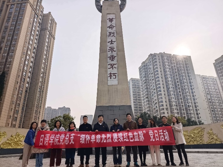12月10日,在第十二个南京大屠杀死难者国家公祭日来临之际,日语学院党总支组织全体教职工党员、入党积极分子前往永川区桂山公园革命烈士纪念碑园,开展“缅怀革命先烈,赓续红色血脉,凝聚奋进力量”主题党日活动。学院民主党派成员、全体教职工参加祭扫活动,共同铭记历史、缅怀先烈、珍爱和平、开创未来。